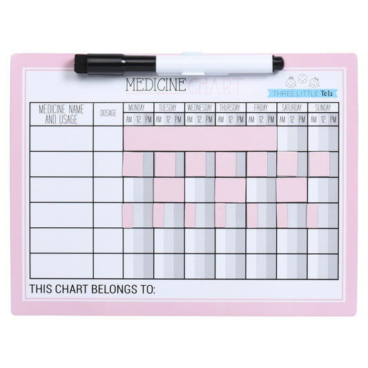 Pink - Kids Medicine Magnetic Refrigerator Chart with Marker