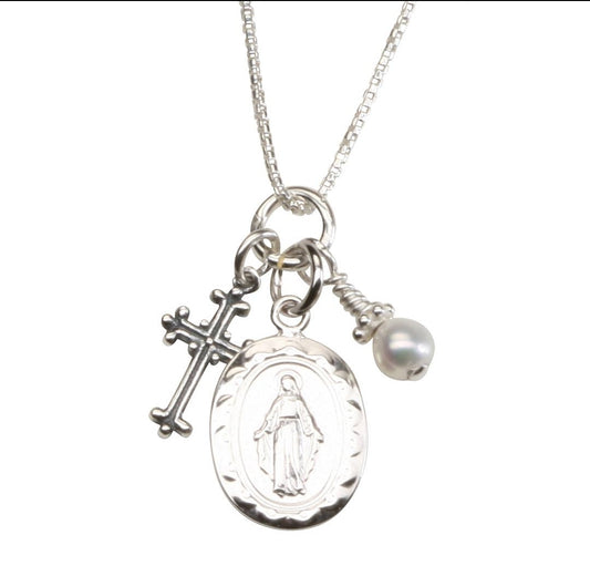 First Communion Miraculous Medal Necklace for Girls & Kids