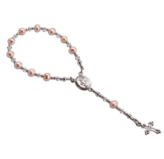 Sterling Silver Pink Baby Rosary Girl Baptism Gift
