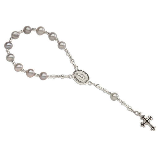 Sterling Silver Grey Baby Rosary Baptism or Christening Gift